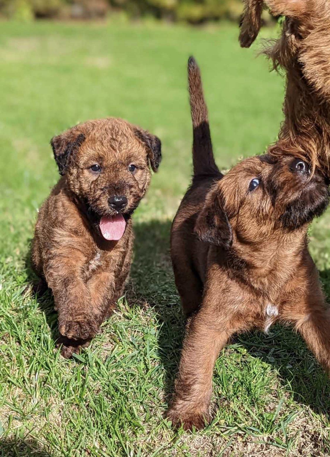 Agility ist u.a. ein sehr schöner Sport für den Irish. Er liebt die Herausforderung dieser Art, er hat viel Spaß dabei, ist sehr gelehrig und setzt alle Anweisungen schnell um. Natürlich ist kein professionelles Agilty erforderlich – es reichen auch Spieleinheiten im Garten mit vorhandenen Dingen, die ein Haus, ein Garten und die Natur so mit sich bringen – wie Eimer, Holzbretter, Besenstiele etc... Hier sind der Fantasie keine Grenzen gesetzt. Der Irish liebt es, mit seinen Menschen aktiv zu sein. Haben sie keine Zeit, passt er sich an und zieht sich zurück, um dann bei der nächsten Animation wieder voll dabei zu sein. Er mag nur wenige Wiederholungen beim Sport - hier sollte Herrchen und Frauchen ihren Spielideen freien Lauf lassen und die Spiele immer wieder umgestalten.